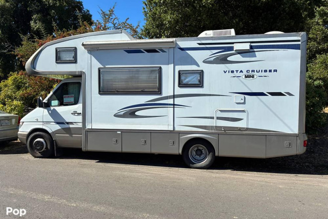The 2007 Vista Cruiser MINI 4230 is a Class C motorhome built on a reliable Freightliner Sprinter chassis with a fuel-efficient Mercedes-Benz 2.7L 5-cylinder turbo diesel engine.