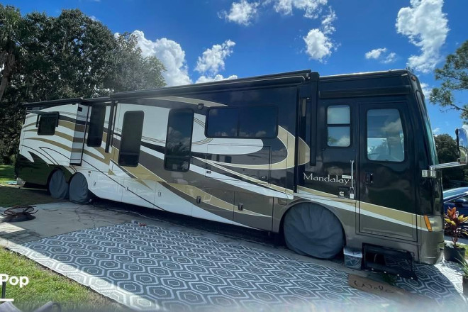 The 2010 Mandalay 43D by Four Winds is a luxury Class A diesel motorhome designed with comfort, power, and style in mind. Built on a Freightliner chassis and powered by a Cummins diesel engine, this coach delivers both strength and reliability for long-distance travel.