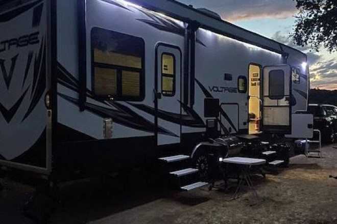 Introducing a well-maintained, single-owner 2018 Dutchmen Voltage V3005 Toy Hauler--designed for adventure and comfort in one rugged yet refined package.