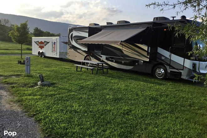 The 2018 Holiday Rambler Endeavor 40D is built for those who want every journey to feel like home while still carrying the luxury of a fine resort on wheels. With only 36,000 miles on its dependable Cummins diesel engine, it has been cared for and remains in excellent condition, offering years of adventure ahead. Its three expansive slide-outs, one stretching an impressive 30 feet and the other two adding another 12 feet each, open the interior into a spacious living area that feels more like a residence than a motorhome.