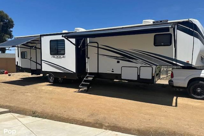 This is a single-owner 2020 Forest River Rogue 351A13 Toy Hauler designed for families and adventurers alike!