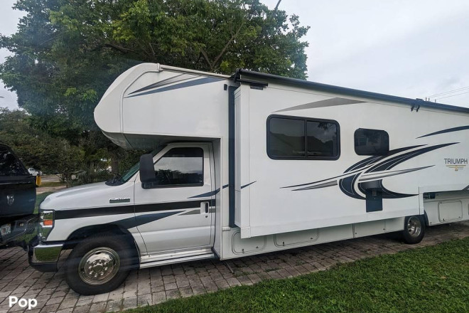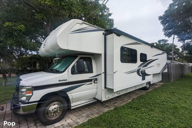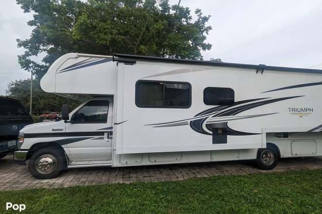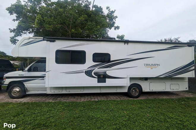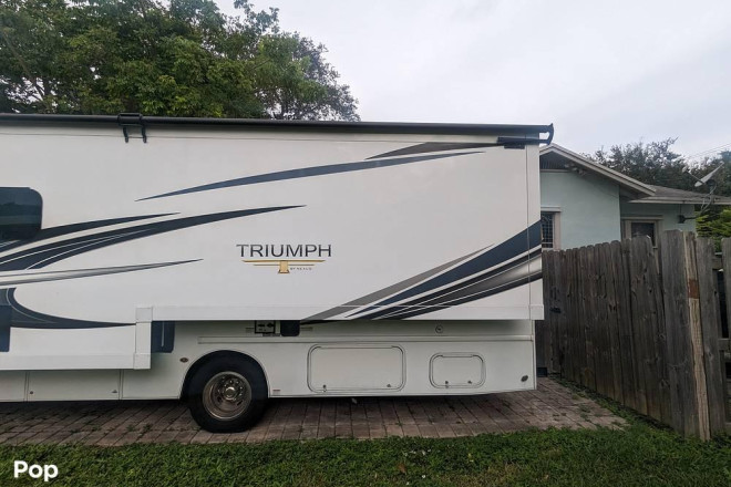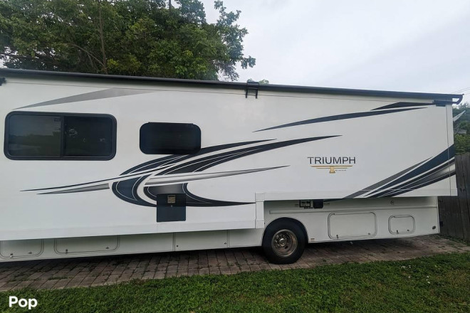 Check out this 2021 Triumph 30T! This RV sports a very roomy interior with many seating and sleeping options. The 30T has a generator and a large pass-thru storage compartment in the rear.