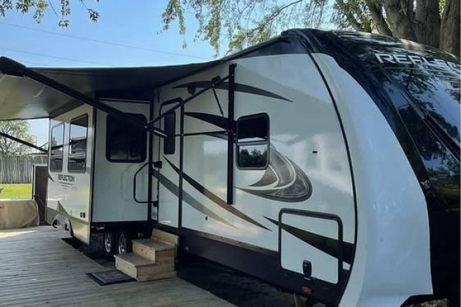 Reflection 312BHTS Luxury travel trailer with bunkhouse that sleeps up to 7, Fully loaded and extras that include slide out awnings and JT struts!