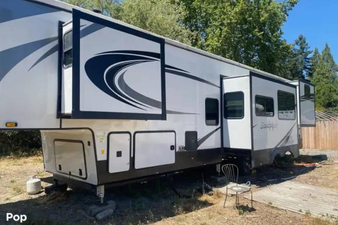 2022 Sandpiper 388BHRD By Forest River. Sleeps up to 8, Rear bunkhouse, Front master bed, 5 Slide-outs, Minimal road use!!