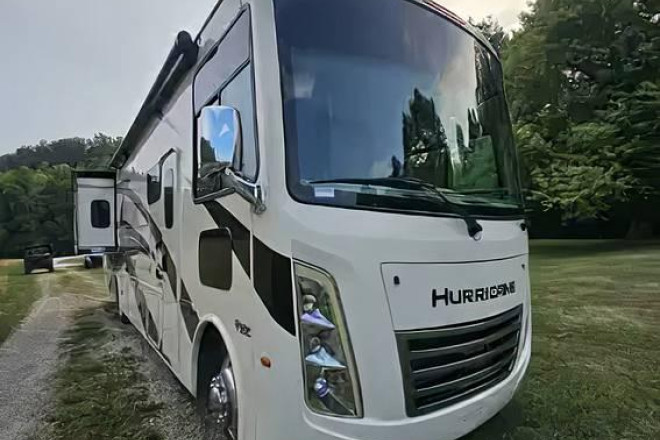 HURRICANE 35M is a luxurious Class A motorhome designed for comfort and convenience on the road. With only 8,287 miles on the odometer!