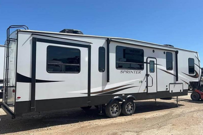 Enjoy spacious, home-like living in the 2022 Keystone Sprinter 3530DEN Limited, a 39-foot fifth wheel designed for comfort and extended stays.