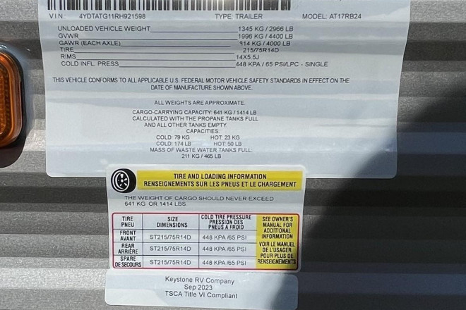 | Make / Model | Aspen Trail / 17rb |
