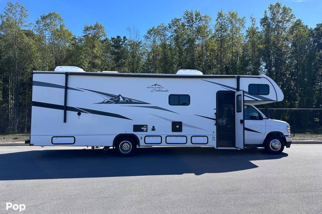 Built on the dependable Ford E-450 chassis, it handles beautifully -- steady on the highway, easy to park, powerful enough for mountain grades but quiet on the open stretch. Inside, the dual slide-outs open up to a spacious living area where modern design meets home comfort. You'll find stainless steel appliances, a full bathroom with a real shower, and sleeping space for up to eight -- though most owners will tell you it's best enjoyed as a roomy escape for two.