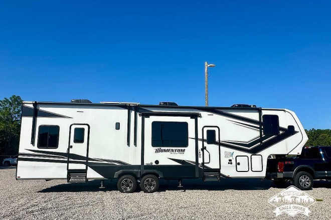 The 2024 Grand Design Momentum G-Class 350G is more than a fifth wheel -- it's a rolling statement of luxury and capability. Built with the craftsmanship and attention to detail that Grand Design is known for, this model blends rugged durability with residential-style comfort. Every inch is designed for travelers who demand more from life on the road.